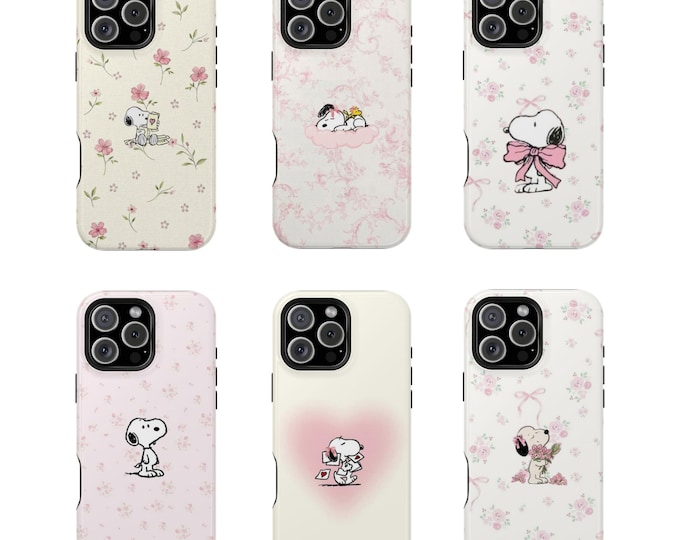 Cute Snoopy Wind Flowers Pinky Phone Case, Minimal Cartoon Art Shockproof Cover For iPhone 17 16 15 Pro Max Case, Magnetic Protective Cover
