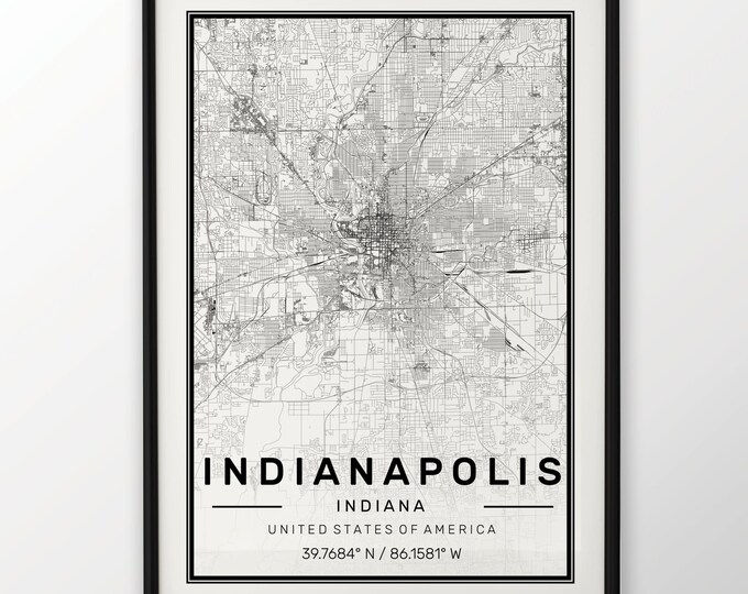 Impresión del mapa de la ciudad de Indianápolis, personalizada, 3 por el precio de 2, póster de mapa de arte de pared moderno en tamaño 50x70 apto para marco de Ikea. Toda la ciudad