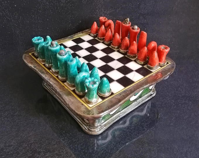 Greek Roman Army Chess Set - Blue&Copper - Wooden case - Blue Board