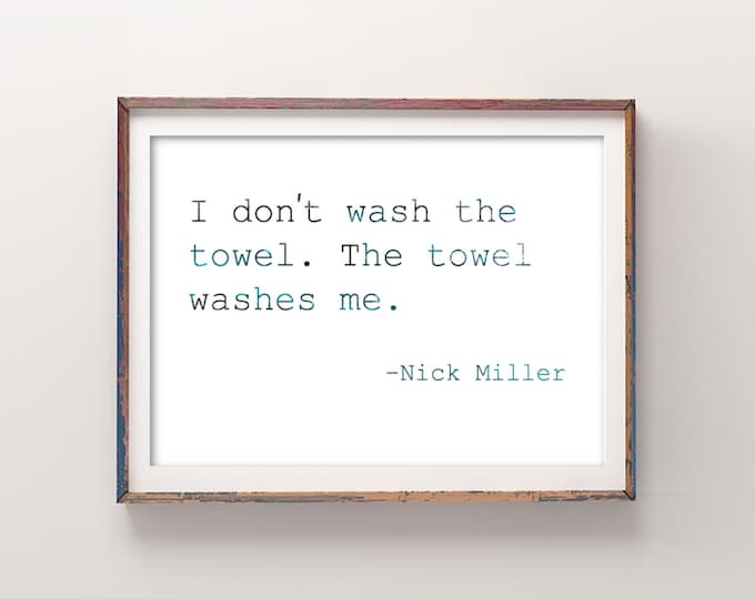Funny Bathroom Signs New Girl TV Show Poster Nick Miller Quotes Poster | New Girl Fan Art | I don't wash the towel. The towel washes me.