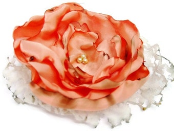 Peach Flower, Wedding hair flower, Made to Order, Maternity Sash, Prom, Dance team