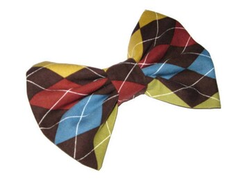 Argyle hair bow, womens and girls fabric bows, classic tuxedo style bow, teen tween preppy modern