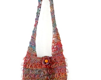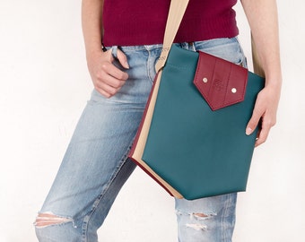 Leather Bag Turquoise Shoulder Bag With Genuine Leather Orange Straps Turquoise Handbag Knit Turquoise Bag Orange Handle Bag For Mom Gift