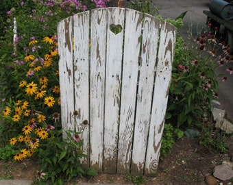 Vintage Garden Gate Door Wood Door with Heart Cut Out Shabby Paint Wall Art