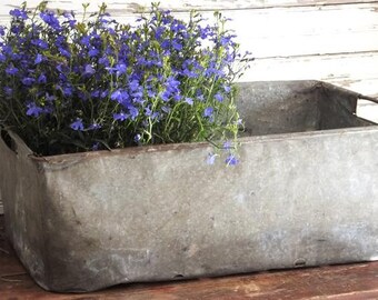 Vintage Galvanized Bin Crate Industrial Wedding Farmhouse Garden Decor Box with Handles