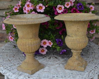 GARDEN URN STAND is a Vintage French Country Very Heavy Rustic 4" Diameter Cast Iron Ornamental Garden Urn or Gazing Ball Stand