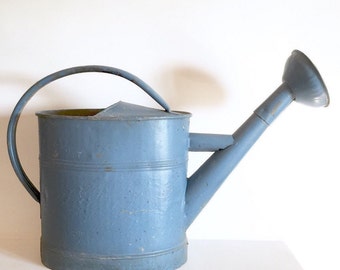 Antique French Watering Can - Vintage Rustic Painted Zinc Watering Can - French Blue Watering Can - French Garden