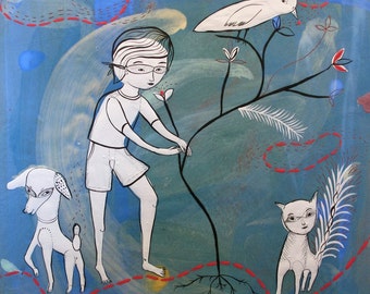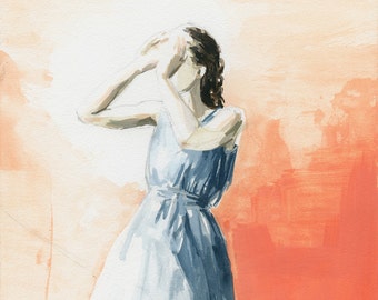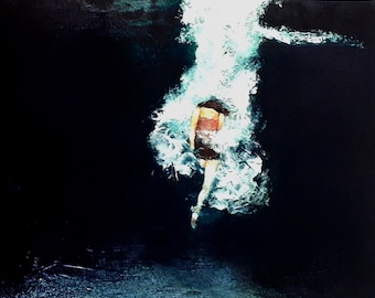 Water art. woman swimmer painting print. swimming figure. ocean pool art. woman swim wall art print "Submerged"