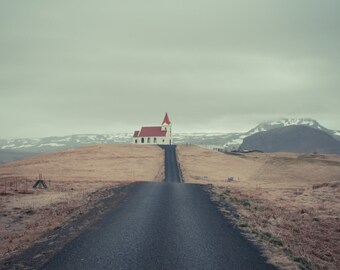 Chapel up the hill, Iceland photography, Northern lights, Nordic art print, Scandinavia, Church photography, 8" x 8", 20 cm x 20 cm