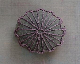 Crochet Lace Stone, Original, Handmade, Table Decoration, Tribal, Art Object, Collectibles, Home Decor, Soft Purple