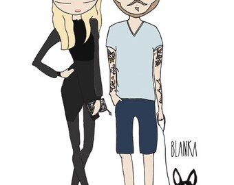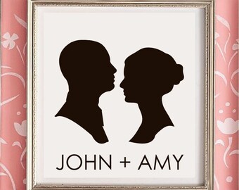 Couple Custom Silhouette Print 10x10 - personalized with a choice of existing silhouettes or your very own custom silhouette - by Le Papier Studio