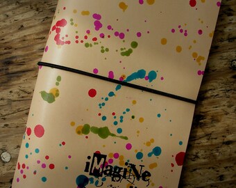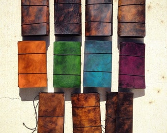 レインボー レザー ラップ ジャーナル - 手製本レザー ブランクまたは罫線入りブック - 6 x 4 - カスタム - パステル マルチカラー ページ - A6
