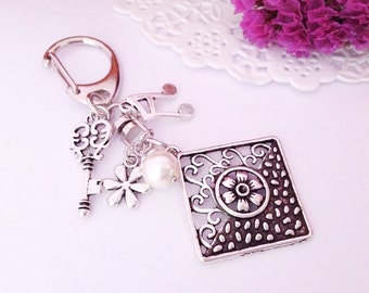 Anitque Silver Hollow Flower Bag Charm, Planner or Filofax Charm, Bag Dangles, Zipper Pull Charm