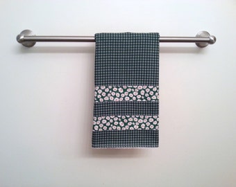 Green Bathroom Hand Towel with Daisies / Country Decor / Bathroom Guest Towel / Thick and Plush Hand Towel