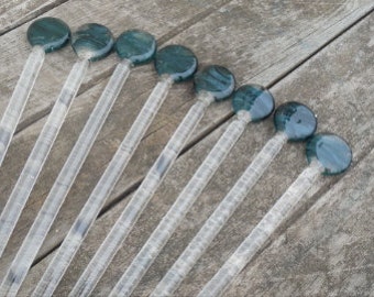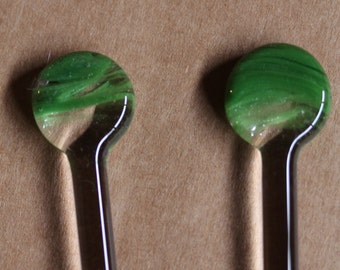 Green Handblown Glass Artisan Made Swizzle and Stir couples drink service gift set - 7" Glass Drink Stir Sticks by OceanBeachGlas