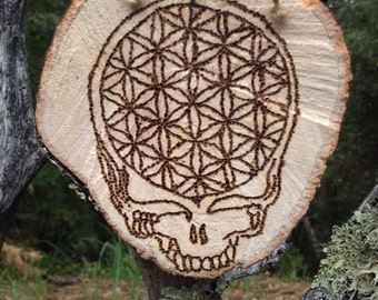 Grateful Dead Wood Burned Wall Hanger ~ Steal Your Face W/ Sacred Geometry ~ Stealy Wall Hanger