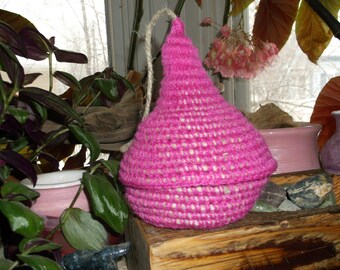 Woolen Basket, Pretty Pink, Wool Crochet Around Hemp Rope Basket, Treasure Trove Basket,Change Basket,Rock Basket, Shell Basket, Bead Basket