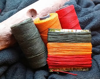 Waxed Cord String Irish Linen for Macrame 5 Yards each of 3 Colors Green Yellow Red Rasta