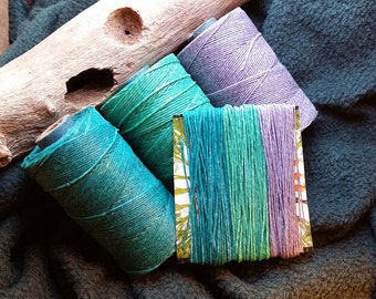 Waxed Cord String Irish Linen for Macrame 5 Yards each of 3 Colors Teal Turquoise Purple