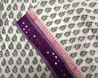 Boho chic fabric, Mirrored fabric, Fabric, floral Indian cotton with handmade mirrored border, 66” length