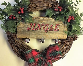 Christmas Wreath with Red & Gold Pip Berries and Icy Pine Stems, Winter Wreath, Pip Berry Wreath, Holiday Wreath, Country Wreath, Free Ship