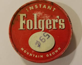 rare extra small folger's instant coffee jar lid metal advertising lid red vintage instant coffee mountain grown rustic primitive americana