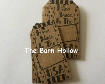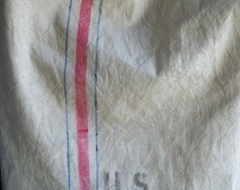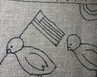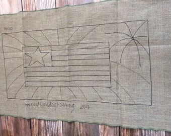 Hooked rug pattern on primitive linen - large American folk art fireworks flag