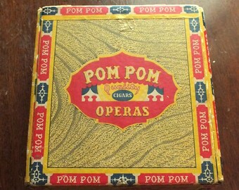 Vintage 1950s Cigar Box - Pom Pom Operas Quality Cigars Box Factory No. TP 110 Florida - Father's Day Gift