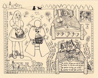 Little Red Riding Hood cards to color and cut: 6-pack of blank, ivory cards with envelopes drawn by LC DeVona
