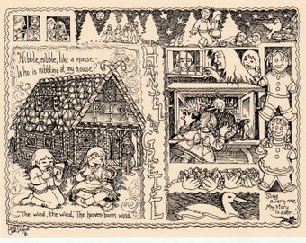 Hansel and Gretel:6-pack of blank, ivory notecards illustrated by LC DeVona of Farmhouse Greetings, Afton, NY