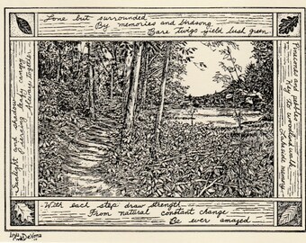 Lily Lake Trail poem, 6-pack of blank, ivory notecards w envelopes- With Each Step poem and art by LC DeVona, Farmhouse Greetings,Afton, NY