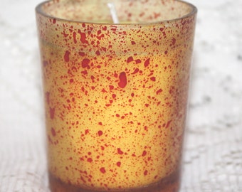 Soy Wax Vintage Votive Candle, Homemade, YOUR SCENT CHOICE, Hand Poured Into a Vintage Gold With Red Speckles Glass Votive Candle Cup
