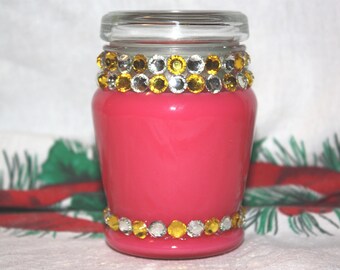 Soy Wax Christmas Jar Candle, Decorated With Silver and Gold Rhinestones,Homemade, YOUR SCENT CHOICE, Hand Poured in Small Flared Jar & Lid