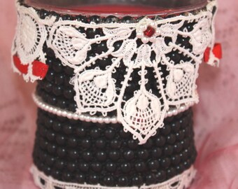 Soy Wax Hourglass Candle, Embellished, YOUR SCENT CHOICE, White Black & Red Vintage Trims, HourGlass Girls Collection, Homemade Hand Poured