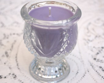 Vintage Soy Wax Candle, Soy Aromatherapy Candle, Homemade, Lavender Scented, Hand Poured in Vintage Pressed Glass Pedestal Container