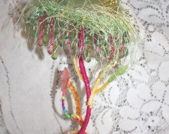 Candle Lamp, Soy Wax Tea Light Lamp, Funky Embellished With Green, Yellow and Pink Yarns, Textiles and Beads,Tea Light Lamp Candle Holder