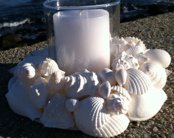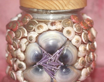 Sea Shell Soy Wax Jar Candle Decorated With Sea Shells and Mother of Pearl Accents Homemade, YOUR SCENT CHOICE, Hand Poured In Jar With Lid