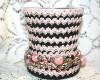 Soy Wax Hourglass Candle, Embellished, YOUR SCENT CHOICE, Pink & Black RickRack, Bracelet, HourGlass Girls Collectiion, Handmade Hand Poured