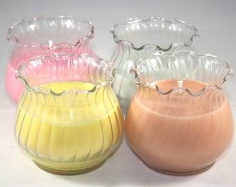 Soy Wax Spring Soy Wax Vintage Candles, Homemade, YOUR SCENT CHOICE, Hand Poured in Vintage Glass 3" Round Fluted Cups, Depression Glass