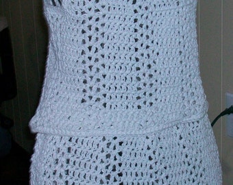 SALE! WAS 55.00 NOW 47.00, White Crochet Top and Skirt, Crochet Summer Wear, Lacy Pattern, Spring Fashion, Summer Fashion ..