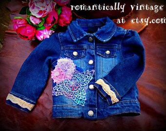 Upcycled Lace Jacket, Blue Jeans, Blue, Baby Clothes, Shabby Chic, Embellished, Handmade, Vintage Inspired, Victorian, Rustic Country Chic