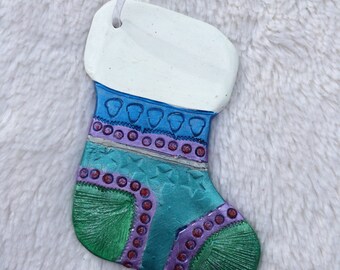SALE!! Christmas Ornament, Christmas Stocking, Stocking Ornament, Clay Ornament, Package Decoration, Christmas, Holiday Stocking, Stocking