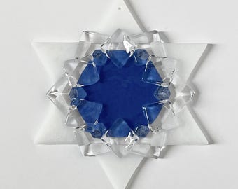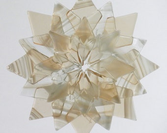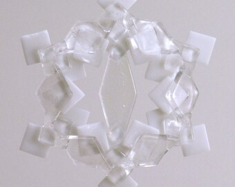 LAST ONE! Fused Glass Snowflake Ornament / Suncatcher: white & clear - winter solstice gift, client gift, fused glass star, teacher gift