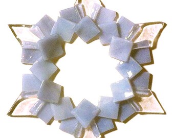LAST ONE! Kiln-formed Glass Snowflake Ornament: periwinkle gray, iridized clear
