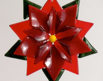 LAST ONE - Kiln-fired Fused Glass Streaky Peach Dahlia Flower Ornament / Suncatcher