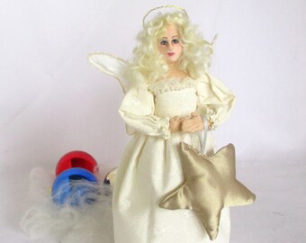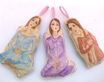 art doll cloth painted ornaments set of three angels Christmas decoration A Whisper of Angels