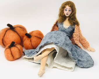 Art doll, needle felted pumpkin, Free Shipping, Thanksgiving gift, Autumn home decor, Blessings