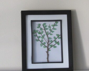 Tree Beach Glass Branch Art, Genuine Seaglass, Green Leaves, Outdoor Art, Nature Art