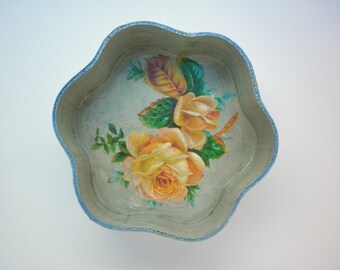 Paper Bowl Hand decorated paper dish Collage and papermache dish Original Paper collage bowl with yellow roses