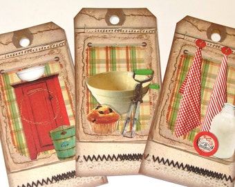 Country Kitchen Tags-Set Of 6-Vintage Kitchen--Country Chic-Nostalgic Tags-Junk Journals-Scrapbooks-Card Making-Handmade-Sirius Fun